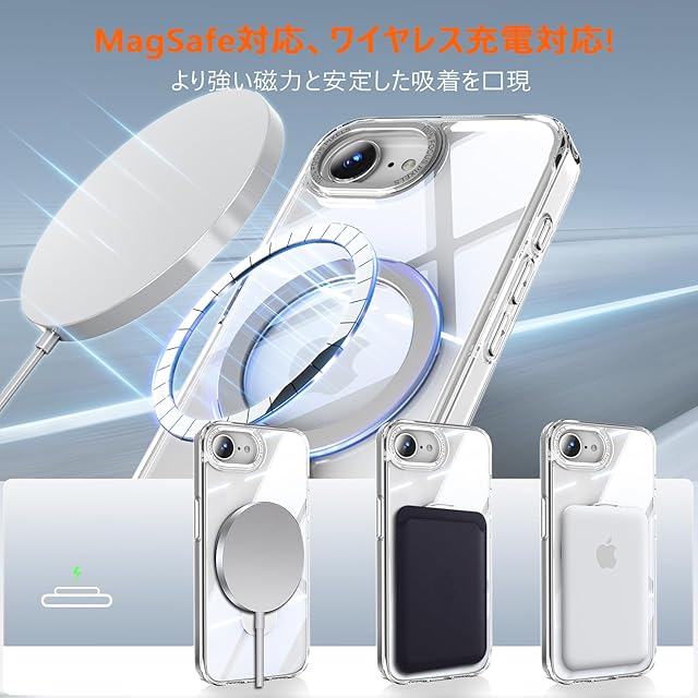 【MagSafe対応・強力な磁力吸着】アイフォン16e用ケースには、N52の高強度MagSafeテクノロジーが採用されており、MagSafe金具がしっかりと固定されて安定性を確保し、簡単に外れることはありません。携帯電話ケースには磁力がアップグレードされた強力なマグネットが搭載されています。ワイヤレス充電、モバイル電源、カーマウント、その他すべてのMagSafeアクセサリにも適しています。安定性を持ち、充電器を近づけると高速ワイヤレス充電が実現です。強力な吸着力で、ワイヤレス充電のためにスマートフォンケースを取り外す必要はありません。