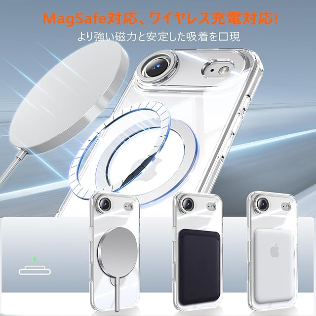 【MagSafe対応・強力な磁力吸着】アイフォンAir用 ケースには、N52の高強度MagSafeテクノロジーが採用されており、MagSafe金具がしっかりと固定されて安定性を確保し、簡単に外れることはありません。携帯電話ケースには磁力がアップグレードされた強力なマグネットが搭載されています。ワイヤレス充電、モバイル電源、カーマウント、その他すべてのMagSafeアクセサリにも適しています。安定性を持ち、充電器を近づけると高速ワイヤレス充電が実現です。強力な吸着力で、ワイヤレス充電のためにスマートフォンケースを取り外す必要はありません。