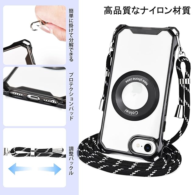 商品名:EasEasy iPhone SE3 ケース iPhone SE2 ケース 肩掛け 首掛け Magsafe対応 衝撃吸収 iPhone8/iPhone7対応 斜めがけカバー ショルダー ストラップ付き アイフォンse第三世代 第2世代カバー 磁気 傷つけ防止 全面保護 おしゃれ 軽量 取り外し可能 長さ調節可能 TPUバンパー(黒)