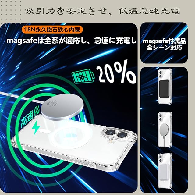 【MagSafe対応】簡単かつ迅速な取り付けと取り外しが可能で、スタンドやカーマウントなどの他のアクセサリと組み合わせて、携帯電話の機能と利便性を向上させることができます。 瞬時に完璧な高速充電! どんなに振っても落ちないので、充電とゲームを同時に行うことができます。 また、ワイヤレス充電、モバイルバッテリー、カーマウント、マウント、リングなど、すべてのMagSafe対応アクセサリと完全な互換性があります。