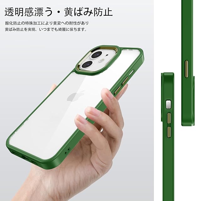 商品名:iPhone 11 用 ケース カバー 背面クリア 耐衝撃 滑り止め 指紋防止 米軍MIL規格 黄変防止 ストラップホール付き ワイヤレス充電対応 スマホケース 11 あいふぉん ケース 11 アイフォン 11 PinLiSheng (グリーン, iPhone11 用)
