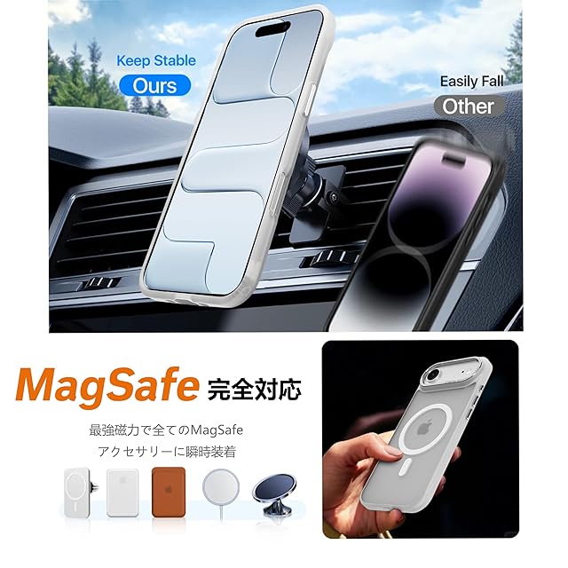 【強化された磁気ロック】2100 Gの吸着力を備えた強力な内蔵磁石により、より速く簡単に持ち運びできるワイヤレス充電とやMagSafeアクセサリーに対応した安全なロックが可能となります。