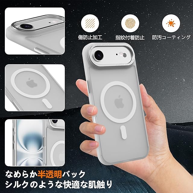 商品名:PinLiSheng iPhone Air MagSafe対応 ケース マット 半透明 金属ボタン 耐衝撃 肌に優しい触感 指紋防止 米軍MIL規格 黄変防止 ストラップホール付き スマホケース ホワイト