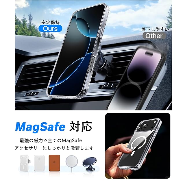 商品名:PinLiSheng iPhone 17 Pro クリア ケース MagSafe対応 カバー マグネット搭載 米軍MIL規格 耐衝撃 マット感 黄ばみなし ストラップホール付き マグセーフ対応 ワイアレス充電対応 アイフォン 17Pro ケース