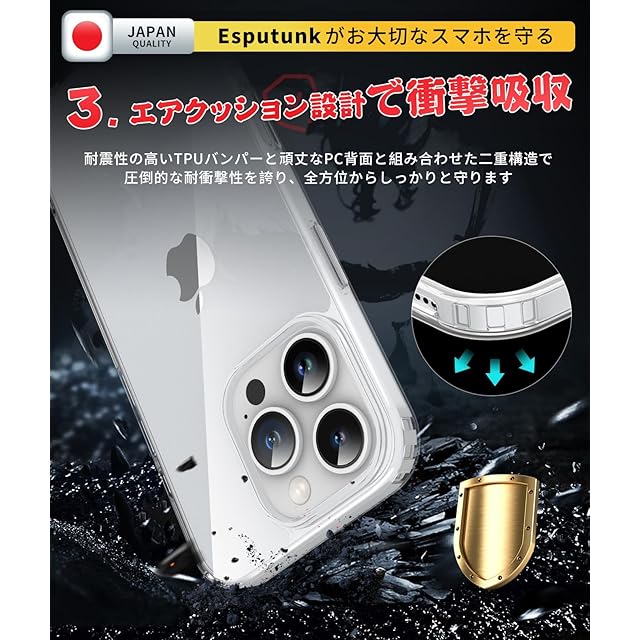 商品名:Esputunk 対応 16 ProMax ケース クリア 米軍MIL規格·耐衝撃 軽薄型 黄変防止/Qi無線ワイヤレス充電/PC背面TPUバンパー 16 Pro Max 透明 保護カバー スマホケース