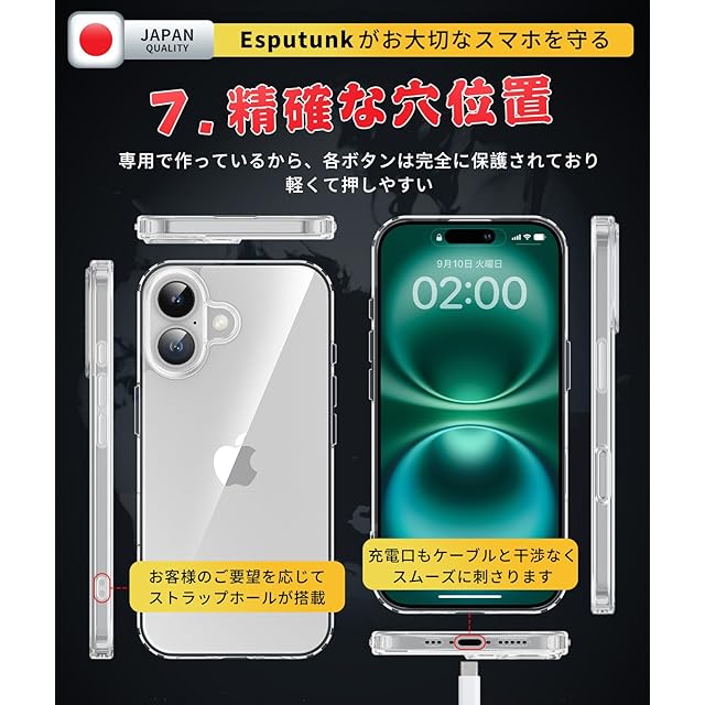 【必ずお読みください】本製品はiPhone16 Plus 対応透明ケースです。ご希望の数は在庫数上の場合はどうぞ弊店にてお問い合わせください。【Esputunk製品の概要】:永久について、初期不良など万一この期間中に製品がご利用頂けなくなった場合は、お客様からのお問い合わせ内容に応じて代替品交換・返金対応を提供致します。(お一人様につき1回限り)