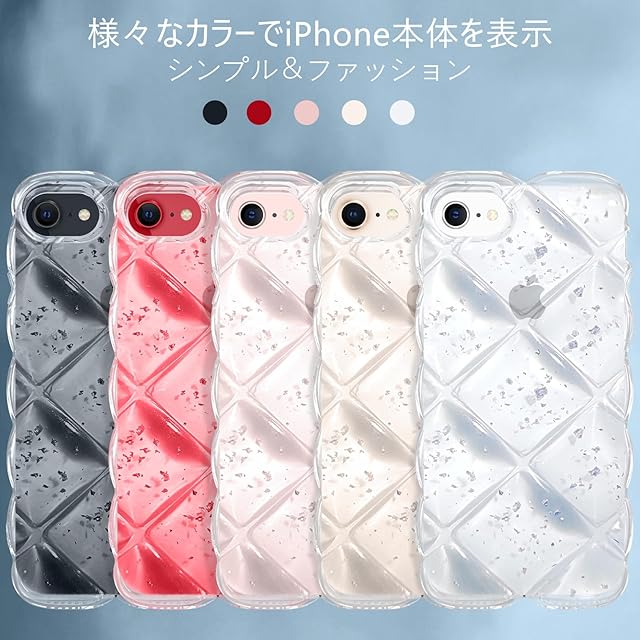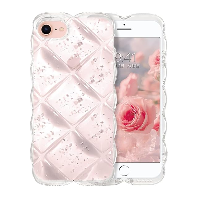 ♥【iPhone 6/6S/7/8/SE(2020)/SE(2022)対応】このiPhone6/6S/7/8/SEクリアケースは透明TPUとウェーブエッジ、背面ダイヤモンドひし形ふわふわとアルミ箔シルバーキラキラ装飾で作られており、光の下でダイヤモンドのように輝き、高級感を醸し出します。