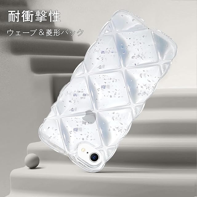 ♥【ウェーブ縁&菱形バック】うねうねエッジにより握りやすくなっていますが、背面にダイヤ柄ひし形凸凹バックとアルミ箔シルバー装飾で、アイフォンiPhoneSe透明キラキラケースは柔らかいTPU製で、耐傷性、耐指紋性、耐衝撃性に優れ、取り外しも簡単,お手入れし易い。注意事項:iPhone6/6S/7/8/SEクリアケースの背面は凹凸のあるひし形のため、ワイヤレス充電には適していません。気になる方はご購入の際にご注意ください。