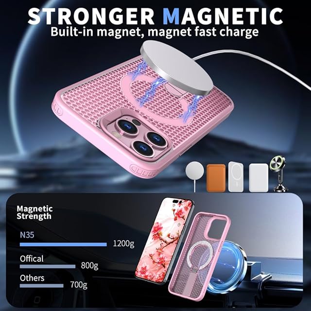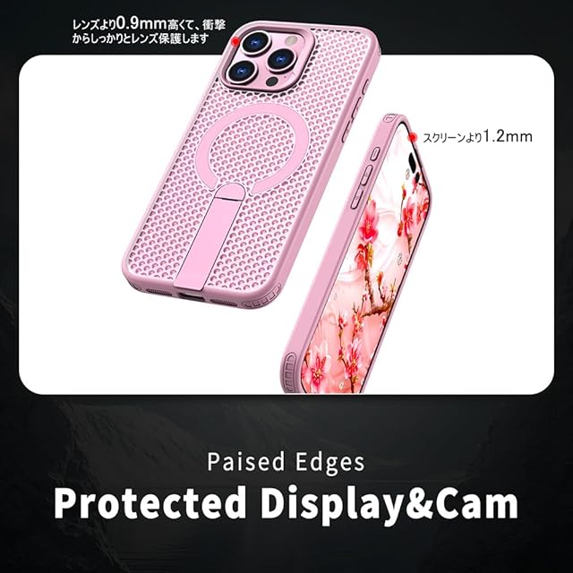 YUZOR for iPhone 12 Pro ケース 冷却 放熱 メッシュ スマホケース MagSafe対応 スタンド付き アイフォン12 Pro カバー 滑り止め 指紋防止 耐衝撃 米軍MIL規格取得 ストラップホール付き 6.1インチ (iPhone12Pro ピンク) FX-12Pro-fen