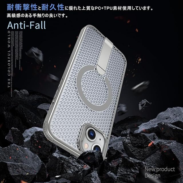 商品名:YUZOR for iPhone 14 ケース 冷却 放熱 メッシュ スマホケース MagSafe対応 スタンド付き アイフォン14 カバー 滑り止め 指紋防止 耐衝撃 米軍MIL規格取得 ストラップホール付き 6.1インチ (iPhone14 灰) FX-14-hui