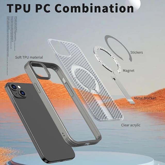YUZOR for iPhone 14 ケース 冷却 放熱 メッシュ スマホケース MagSafe対応 スタンド付き アイフォン14 カバー 滑り止め 指紋防止 耐衝撃 米軍MIL規格取得 ストラップホール付き 6.1インチ (iPhone14 灰) FX-14-hui