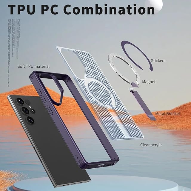 YUZOR for Galaxy S24 Ultra ケース SC-52E | SCG26 冷却 放熱 メッシュ スマホケース Qi充電 スタンド付き Samsung S24 Ultra カバー 滑り止め 指紋防止 耐衝撃 米軍MIL規格取得 ストラップホール付き (GalaxyS24Ultra 紫) FX-S24Ultra-zi