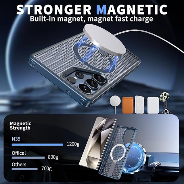 商品名:YUZOR for Galaxy S25 Ultra ケース SC-52F | SCG32 冷却 放熱 メッシュ スマホケース Qi充電 スタンド付き Samsung カバー 滑り止め 指紋防止 耐衝撃 米軍MIL規格取得 ストラップホール付き (GalaxyS25Ultra 紺色) FX-S25Ultra-lan