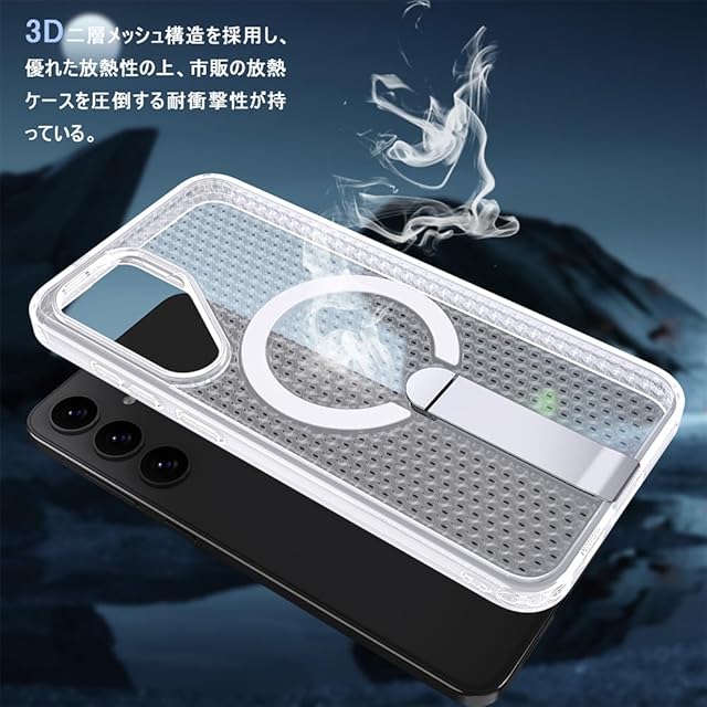 商品名:YUZOR for Galaxy S25 Plus ケース 冷却 放熱 メッシュ スマホケース Qi充電 スタンド付き Samsung S25 Plus カバー 滑り止め 指紋防止 耐衝撃 米軍MIL規格取得 ストラップホール付き (GalaxyS25plus 透明) FX-S25plus-tou