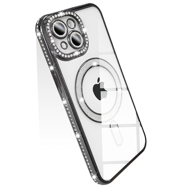 商品名:JOOBOY スマホケース 対応 iPhone 15 Plus クリア ケース 透明 メッキ加工 Magsafe対応 きらきら ブリンブリン 衝撃吸収 かわいい キラキラ 女性 人気 キャラクター ワイヤレス充電対応 おしゃれ ストラップホール付き アイフォン15プラス 携帯カバー (ブラック, iPhone15 Plus)