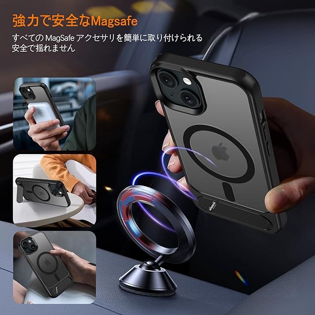 ❥【超軽量&超フィット&耐衝撃&全面保護】:多機能-Magsafeしてもスタンド付きスマホケースの中で比較的薄くて軽いのが、このアイフォン15ケースは柔軟な側面、脱着簡単、スリムで軽量なデザインで気軽に手に持ちやすい。TPU+PCで作られて、誤落下の衝撃を効果的に吸収でき、いPhone15を全面的に保護し、落下や衝撃による損傷を軽減します。