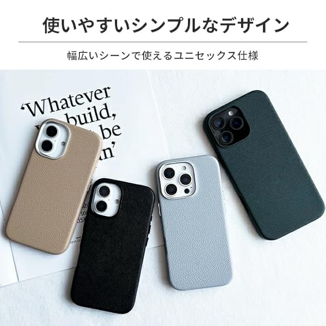 ✅【多彩なカラーバリエーションとデザイン】<ベージュ/グレー/シルバー>シルバーメタルのカメラレンズフレームは華やかさをプラス。背面のPUレザーは凹凸のあるシュリンク素材で手馴染みがよく、高級感があります。<ブラック/ネイビー/グリーン>背面ケースとカメラレンズフレームは同色でシンプルで男女問わずご使用いただけます。ケース背面のPUレザーはサフィアーノ素材で本革のように手触りが良く、ビジネスシーンにもぴったりです。カラーに合った素材やデザインを採用しており、気分やシーンに合わせたコーディネートが楽しめます。