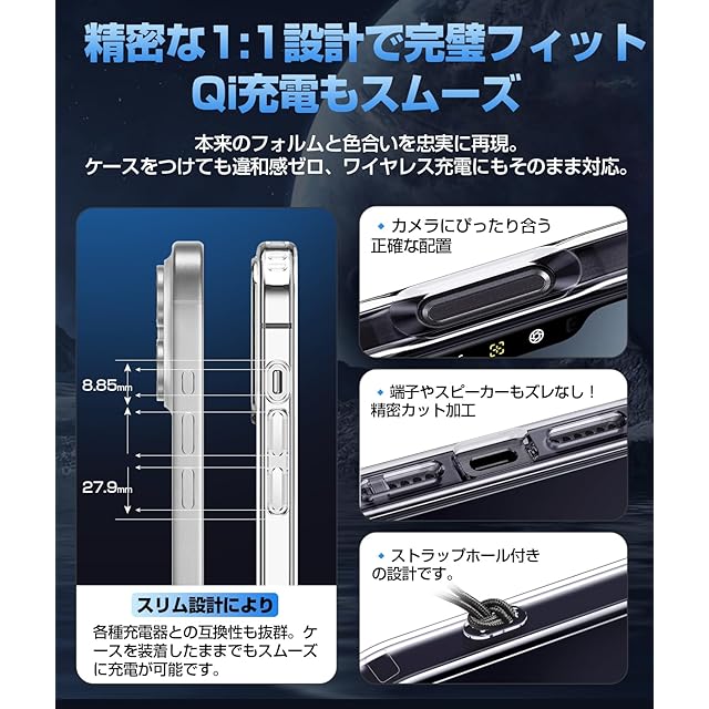 【ワイヤレス充電対応・装着したまま使える利便性】ケースの厚みと素材を最適化し、MagSafeおよびQi規格のワイヤレス充電にフル対応。マイクロドット処理により、にじみや気泡を防止し、装着したままでも充電スピードを損なわず快適。自宅でも外出先でも、ケーブルの煩わしさから解放。置くだけで即充電でき、通勤中や就寝前のひとときも快適に。見た目・操作感・機能性のすべてにこだわり抜いたデザインで、さまざまなライフスタイルにスマートに対応します。充電のたびに、使いやすさの違いを実感できる一枚です。※厚みのあるケース形状により、一部MagSafeアクセサリーで磁力が弱まる可能性があります。あらかじめご了承ください