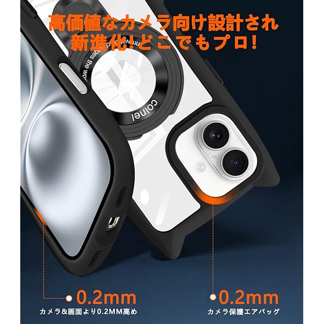 【iPhone 17 Pro マホケース】iPhone 17 Pro 専用ケース。ご確認の上ご購入ください。品質に問題がある場合は、お気軽にお問い合わせください。 【優れた素材】側面を"TPU"のソフトな素材で衝撃を吸収させ、背面は透明度が維持出来るハードな"ポリカーボネート"をハイブリッドしたケース、透明度が高く、光透過率、黄ばみに強い。 【利便性で快適】わざわざスマホスタンドを買う必要はなく、代わりになるものを探す必要もない。フラット収納できるリングはスタンドになる。縦置き、横置きのどちらでも安定的に支え、120°で多角度自由に調整でき、視聴に楽しみ、首や肩周りリラックス、指と腕の疲れ解消し, どんなことをしていても、日常生活で両手解放! 【MagSafe対応】超世代的な隠しスタンドと強力なマグネットリングの強力な結合により、高い吸着力でガッチリと固定しながら充電ができます。安定性を持ち、充電器を近づけると高速ワイヤレス充電が実現です。また、磁気を利用しているため充電器以外にもスタンドやウォレットなどのアクセサリーに固定可能。 【製品】商品到着時の初期不良や間違い等があった場合、評価前にメールでご連絡を頂けください。お客様からのお問い合わせ内容に応じて商品交換・返品可能です。