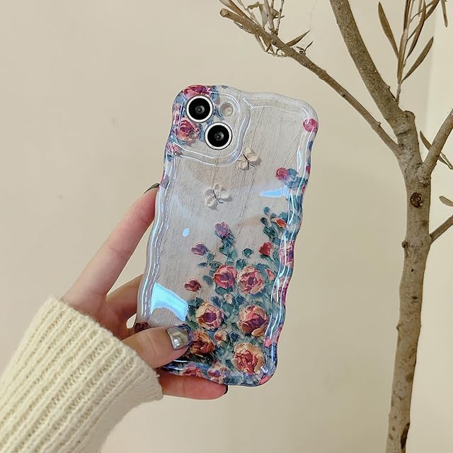 【花柄デザイン ▪ フィット感】背面にカラフルな油絵の花柄、色味が優しく、いつものスマホに上品さをプラス。側面が透明なデザインからiPhone 13 Proカラーが見えるデザインで、本来の美しさと高級感をそのままに映り出し。