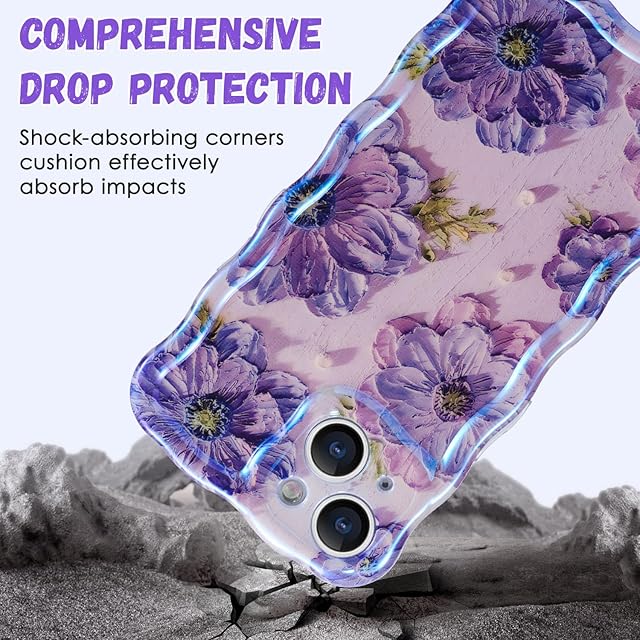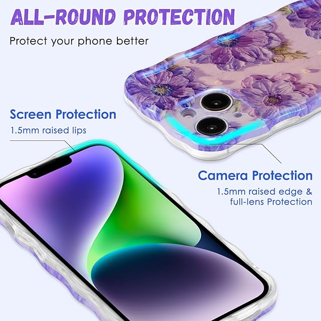 商品名:QLTYPRI iPhone 15 Plusケース iPhone 14 Plusケース TPUカバー おしゃれ 韓国 可愛い 花柄 薄型 軽量 耐衝撃 スマホケース ワイヤレス充電対応 ストラップホール付き アイフォン15 Plus/14 Plus ケース 6.7インチ 対応 - パープル