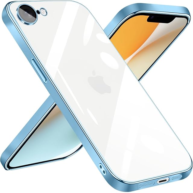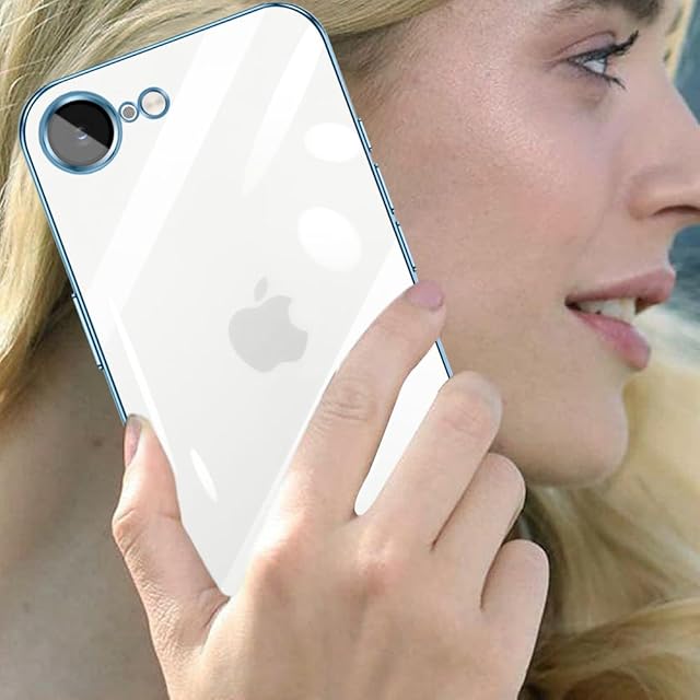 iPhone 16e 用 ケース クリア 耐衝撃 iPhone 16e 用 カバー 軽量 薄型 TPU アイフォン16e スマホケース ワイヤレス充電対応 擦り傷防止 落下防止 ストラップホール付き メッキ加工 - ブルー