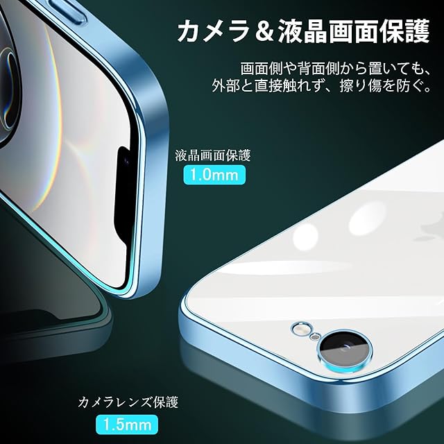 【全面保護】前面と背面カメラ部のフチを高く設計し、液晶画面とカメラレンズをキズから保護します。