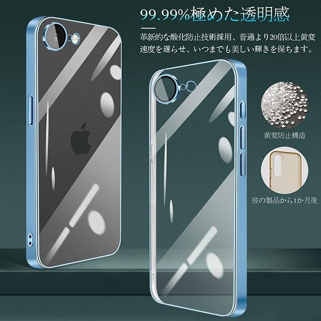 商品名:iPhone 16e 用 ケース クリア 耐衝撃 iPhone 16e 用 カバー 軽量 薄型 TPU アイフォン16e スマホケース ワイヤレス充電対応 擦り傷防止 落下防止 ストラップホール付き メッキ加工 - ブルー