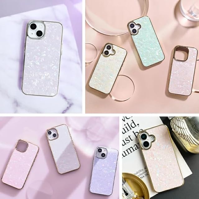 ✅【可愛い(かわいい)エレガント】スマホケース背面のキラキラ輝くシェル風ガラスがプリズムのように反射し、外枠の高級感あるメッキフレームが備わって、大人可愛さと上品さを同時に演出します。ワンランク上な大人を目指すあなたに向けた、UNiCASE発のエレガントで可愛い iPhone16 Pro対応のスマホケースです。