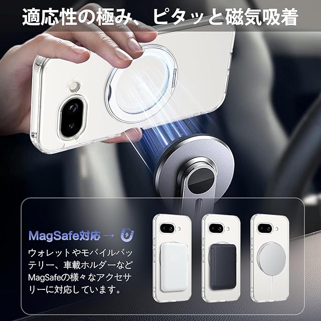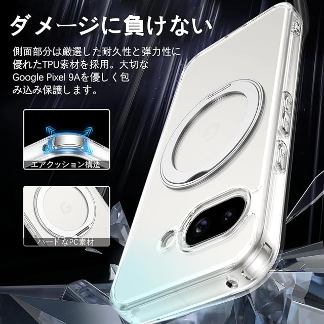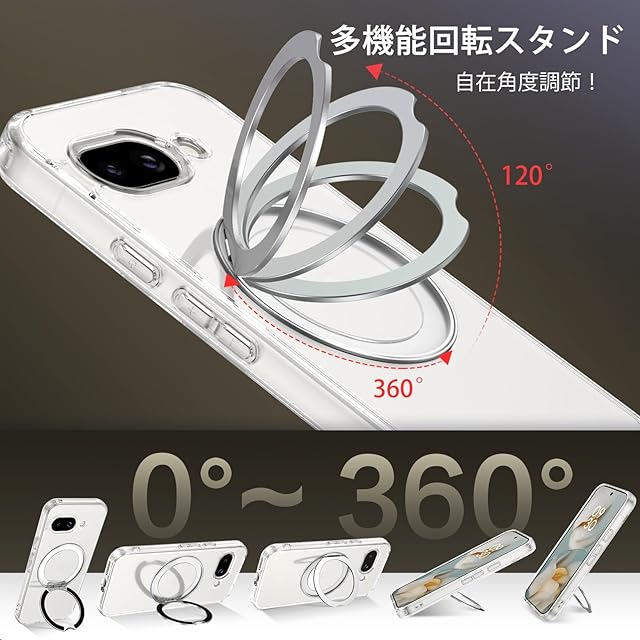 商品名:BENTOBEN Google Pixel 8a ケース クリア MagSafe対応 ワイヤレス充電 360°回転スタンド 縦横両対応 耐衝撃 黄変なし マグネット内蔵 ストラップホール付き ピクセル8a ケース カバー クリア