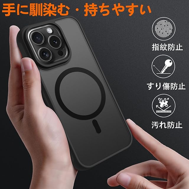 【対応機種】iPhone16 Pro ケース のために専門設計。(スピーカーとカメラそして他の部位は完璧にカットアウトして、iPhone のすべての機能はケースをつけたままスムーズに操作できます)<br>【指紋防止】 手の脂・汗を効果的に抑えつつ、ずっと触っていたい肌触りを実現。手汗がすごい方や冬にハンドクリームを使う方ににおすすめ<br>【強化された磁気ロック】1,900 gの吸着力を備えた強力な内蔵磁石により、より速く簡単に持ち運びできるワイヤレス充電とやMagSafeアクセサリーに対応した安全なロックが可能となります<br>【画面とカメラの保護】隆起した画面の端とカメラガードレンズフレームにより、傷保護機能をアップグレードしました。<br>【品質】:製品に不具合が生じた場合は、商品到着30日以内に、直接当店にメールにてご連絡ください。お客様からのお問い合わせ内容に応じて代替品交換・返金可能です。