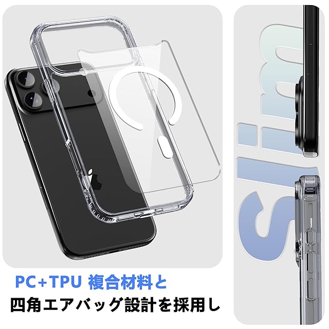 商品名:PinLiSheng iPhone 17 Pro Max ケース MagSafe対応 背面が透明 カバー マグネット搭載 米軍MIL規格 耐衝撃 マット感 黄ばみなし ストラップホール付き マグセーフ対応 ワイアレス充電対応 アイフォン 17ProMax ケース クリア