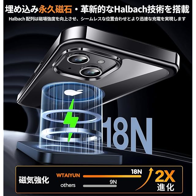 【本体を再現/ストラップホール】当社のい phone 13 両面カバー は、メッキ技術で仕上げられ、光沢を加えながらiPhone本体の美しさを完璧に再現しています。メッキコーティングにより滑り止め効果があり、片手操作でも安全に使用できます。このiPhone13 マグネット対応 ケースは高透過性で黄変防止に強いPC背面パネルを使用し、iPhoneの高級感と特徴的なロゴが鮮明に見えます。また、ストラップホールが付いており、スマートフォンの紛失や落下を防ぎます