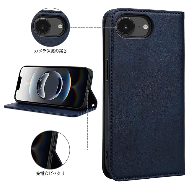 商品名:Rssviss iPhone 16e 用 ケース 手帳型 スタンド機能 カード収納 マグネット付き 携帯ケース 手帳型 iPhone 16e(2025) 6.1 inch W1 ダークブルー