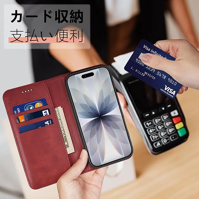 商品名:Rssviss iPhone 17 用 ケース 手帳型 アイフォン 17 用 手帳型 ケース マグネット付き カード収納 スタンド機能 6.3インチ W1 レッド