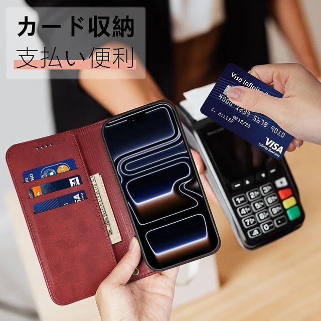 商品名:Rssviss iPhone 17 Pro 用 ケース 手帳型 アイフォン 17 プロ 用 手帳型 ケース マグネット付き カード収納 スタンド機能 6.3インチ W1 レッド