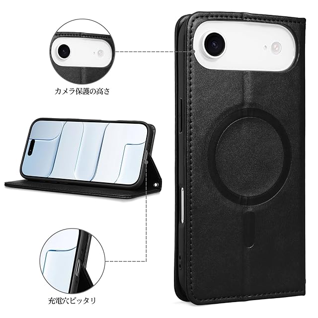 商品名:Rssviss iPhone Air 用 ケース 手帳型 MagSafe対応 アイフォン エアー用 手帳型 ケース ワイヤレス充電 スタンド機能 カード収納 マグネット付き RFIDブロッキング 6.5インチ W1M ブラック