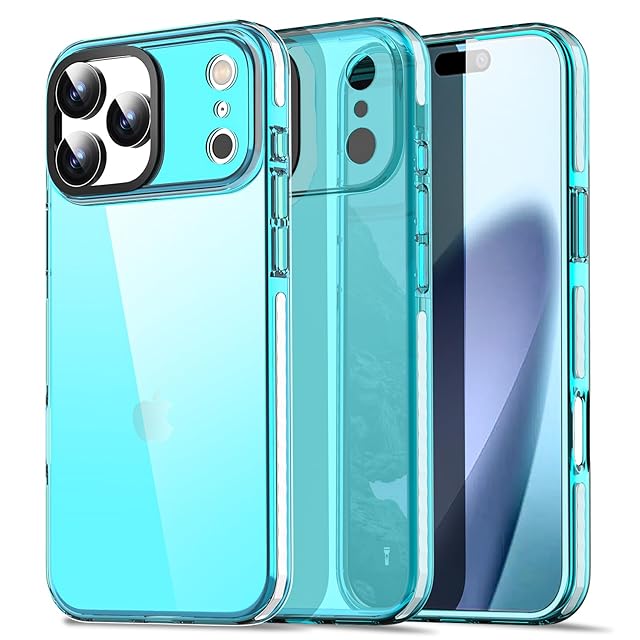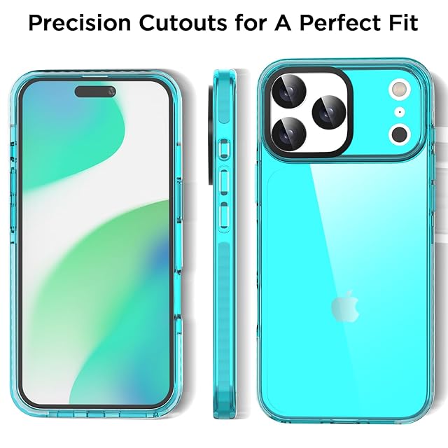 商品名:AICase iPhone 17 Pro用ネオンライトブルークリアケース、薄型・軽量・カラフルでトレンド感あふれる明るいゼリー素材の保護ケース、ワイヤレス充電対応