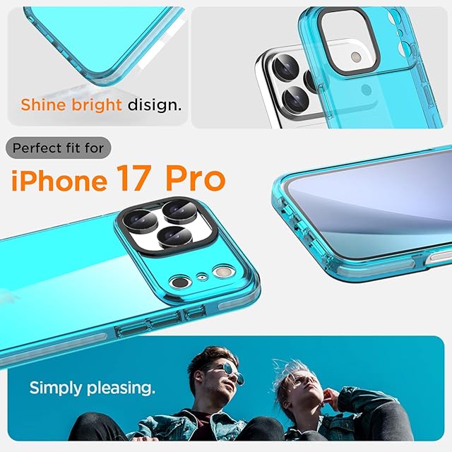 AICase compatible with iPhone 17 Pro用ネオンライトブルークリアケース、薄型・軽量・カラフルでトレンド感あふれる明るいゼリー素材の保護ケース、ワイヤレス充電対応