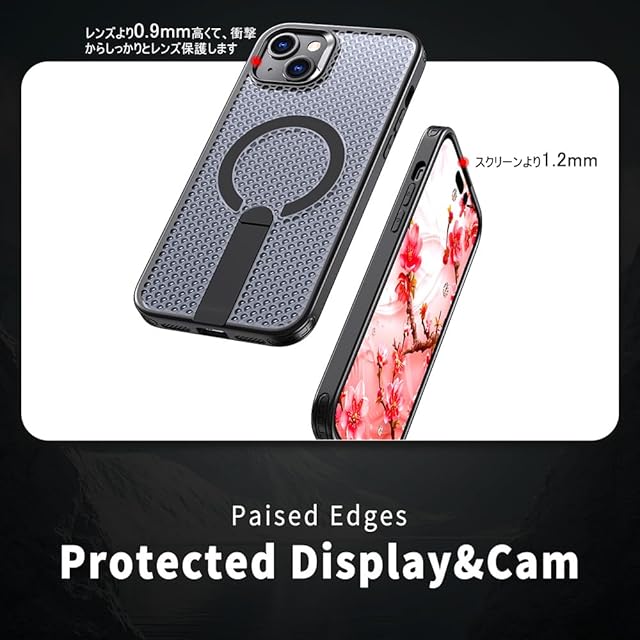 YUZOR for iPhone 13 ケース 冷却 放熱 メッシュ スマホケース MagSafe対応 スタンド付き アイフォン13 カバー 滑り止め 指紋防止 耐衝撃 米軍MIL規格取得 ストラップホール付き 6.1インチ (iPhone13 黒) FX-13-hei