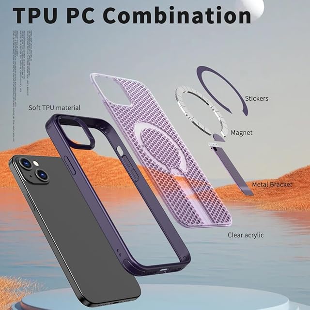 YUZOR for iPhone 14 ケース 冷却 放熱 メッシュ スマホケース MagSafe対応 スタンド付き アイフォン14 カバー 滑り止め 指紋防止 耐衝撃 米軍MIL規格取得 ストラップホール付き 6.1インチ (iPhone14 紫) FX-14-zi
