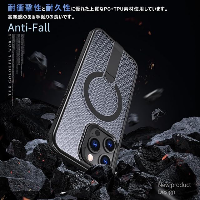 【上質なPC+TPU素材】、【放熱性高い+超強耐衝撃性】、【スタンド付き+強力な磁力吸着+ストラップホール】、【滑り防止・握り心地抜群】