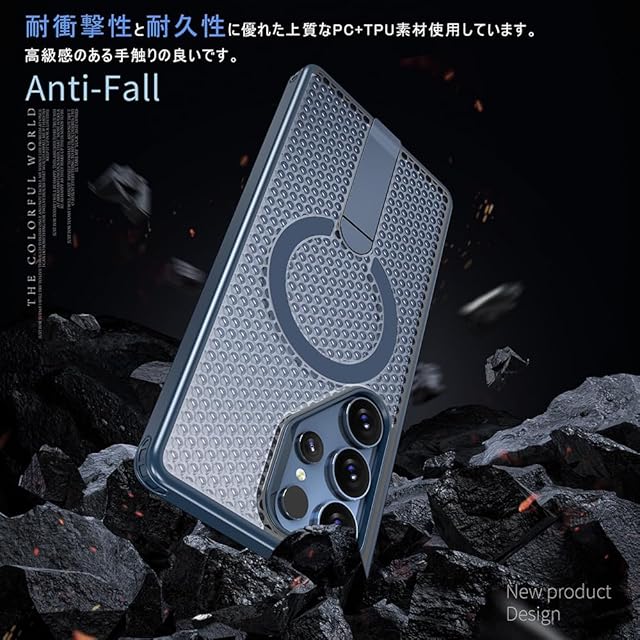 【上質なPC+TPU素材】、【放熱性高い+超強耐衝撃性】、【スタンド付き+強力な磁力吸着+ストラップホール】、【滑り防止・握り心地抜群】