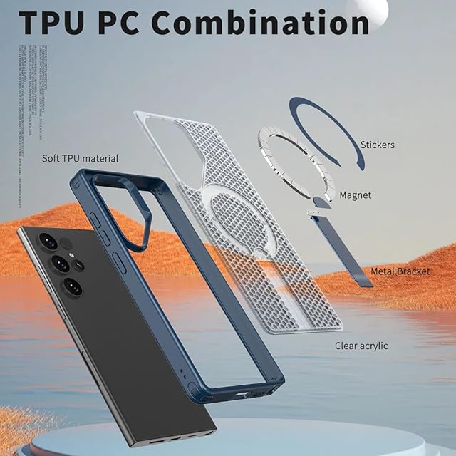 商品名:YUZOR for Galaxy S23 Ultra ケース SC-52D | SCG20 冷却 放熱 メッシュ スマホケース Qi充電 スタンド付き Samsung S23 Ultra カバー 滑り止め 指紋防止 耐衝撃 米軍MIL規格取得 ストラップホール付き (GalaxyS23Ultra 紺色) FX-S23Ultra-lan