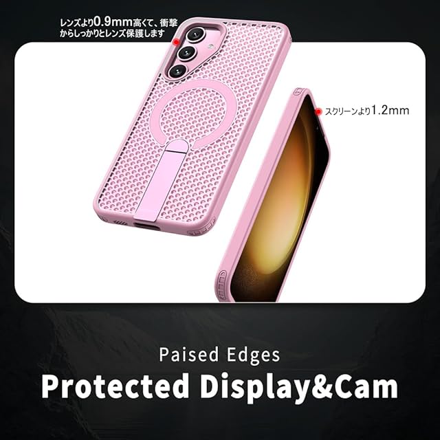 商品名:YUZOR for Galaxy S25 ケース SC-51F | SCG31 冷却 放熱 メッシュ スマホケース Qi充電 スタンド付き Samsung S25 カバー 滑り止め 指紋防止 耐衝撃 米軍MIL規格取得 ストラップホール付き (GalaxyS25 ピンク) FX-S25-fen