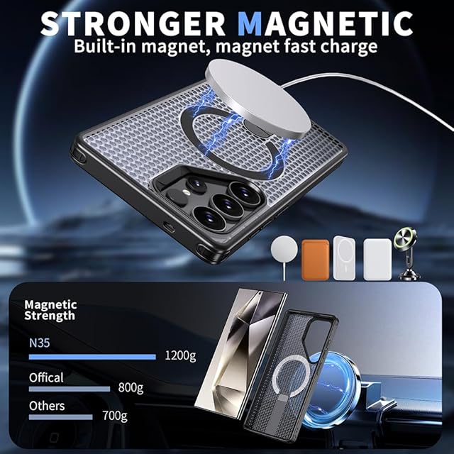 YUZOR for Galaxy S25 Ultra ケース SC-52F | SCG32 冷却 放熱 メッシュ スマホケース Qi充電 スタンド付き Samsung カバー 滑り止め 指紋防止 耐衝撃 米軍MIL規格取得 ストラップホール付き (GalaxyS25Ultra 黒) FX-S25Ultra-hei
