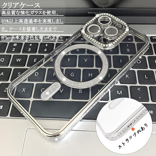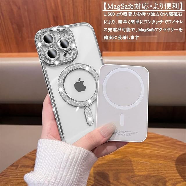商品名:JOOBOY スマホケース 対応 iPhone 13 Pro Max クリア ケース 透明 メッキ加工 Magsafe対応 きらきら ブリンブリン 衝撃吸収 かわいい キラキラ 女性 人気 キャラクター ワイヤレス充電対応 おしゃれ ストラップホール付き アイフォン13プロマックス 携帯カバー (シルバー, iPhone13 Pro Max)