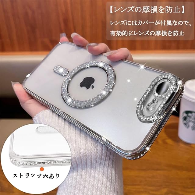 商品名:JOOBOY スマホケース 対応 iPhone 16e クリア ケース 透明 メッキ加工 Magsafe対応 きらきら ブリンブリン 衝撃吸収 かわいい キラキラ 女性 人気 キャラクター ワイヤレス充電対応 おしゃれ ストラップホール付き アイフォン16e 携帯カバー (シルバー, iPhone 16e)