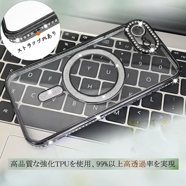 商品名:JOOBOY スマホケース 対応 iPhone 16e クリア ケース 透明 メッキ加工 Magsafe対応 きらきら ブリンブリン 衝撃吸収 かわいい キラキラ 女性 人気 キャラクター ワイヤレス充電対応 おしゃれ ストラップホール付き アイフォン16e 携帯カバー (ブラック, iPhone 16e)