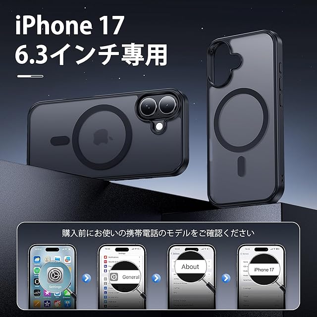 商品名:【米軍規格・MagSafe対応】Gtsoho iPhone 17 ケース 用 2025 半透明 マグネット搭載 ワイヤレス充電 耐衝撃 耐久性 全面保護 黄ばみなし ストラップホール付き イフォン あいふおん17ケース カバー マグセーフ対応 ブラック